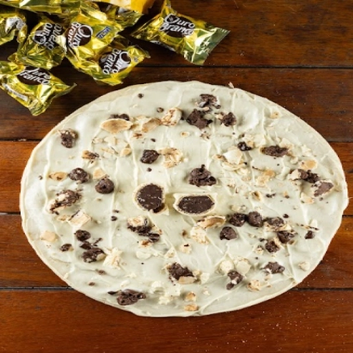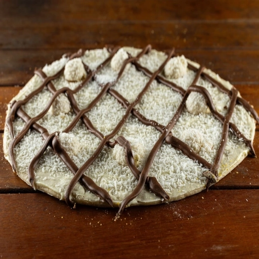Uma delíciosa base de chocolate branco, coco granulado, bombom raffaello e traços de chocolate ao leite.